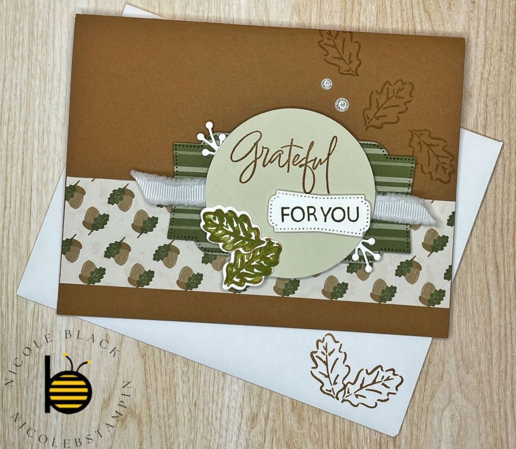 The colors used for this Thanksgiving Card are Pecan Pie, Mossy Meadow, and Old Olive.