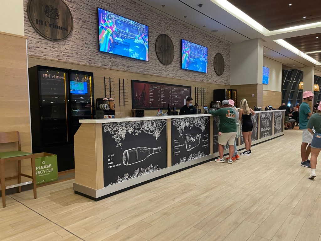 We have had University of Miami season tickets for the last 13 years. The first games I went to, I gave Nathan a hard time feeling like it was a college football game. I mean, I could wear shorts to the games the whole season (Ohio girl, remember). But I have taken to the culture. Especially because they play in the Miami Dolphins stadium. We have club level seats, so we are under cover, have an air conditioned food area, and we have access to two full bars and a wine bar. (spoiled).