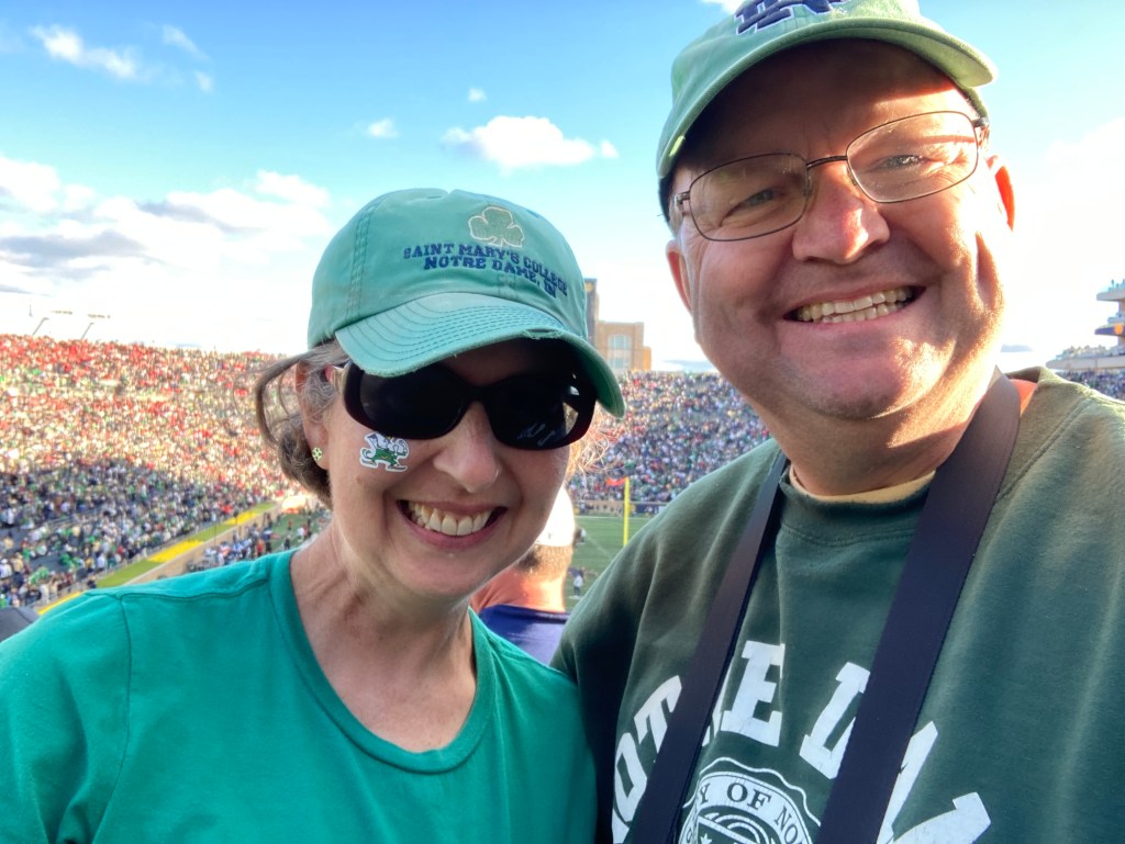 My cousin, Michele, and her husband, Chris, at a Notre Dame game. We always enjoy the football season with them.