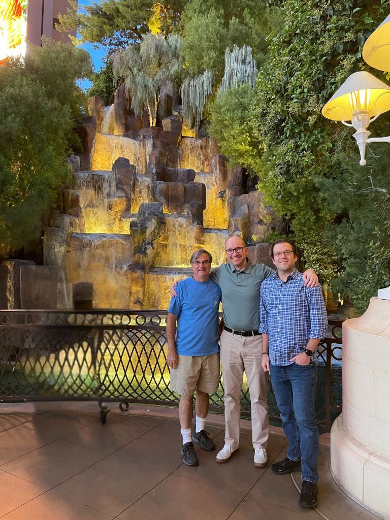 On Tuesday, we joined friends and colleagues for an all-you-can-eat seafood buffet at the Winn. It was a fantastic find! Evan and I did a number on the crab legs, and afterwards, we decided to walk back down the Strip. The evening was beautiful, and we enjoyed the sights, including a water show in front of the Bellagio.