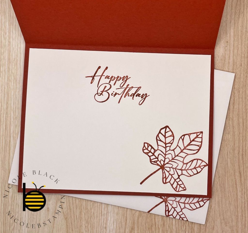 I have created another fall birthday card. This uses the Changing Leaves Bundle again. I just love how all the pieces work together! You will also note that I am using the Iconic Celebrations DSP again.