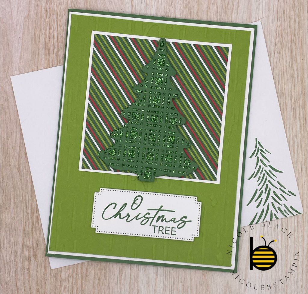 - Garden Green – 8-1/2″ x 5-1/2″ card base scored at 4-1/4″, 3-1/2″ x 2-1/2″ Tree Die