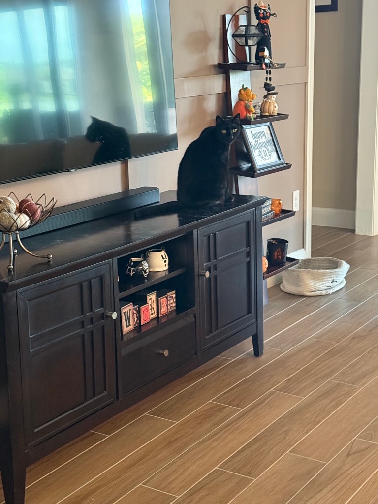 As Halloween approaches, it’s the perfect time to introduce you tot he most important members of our household – out beloved cats! You’ve met my husband, but now it’s time for you to meet our furry babies. Since our last name is Black, you could say we have a little bit of a black cat theme going on here, with four black cats in total. We also have a gray-and-white handsome devil and a charming tortoiseshell.