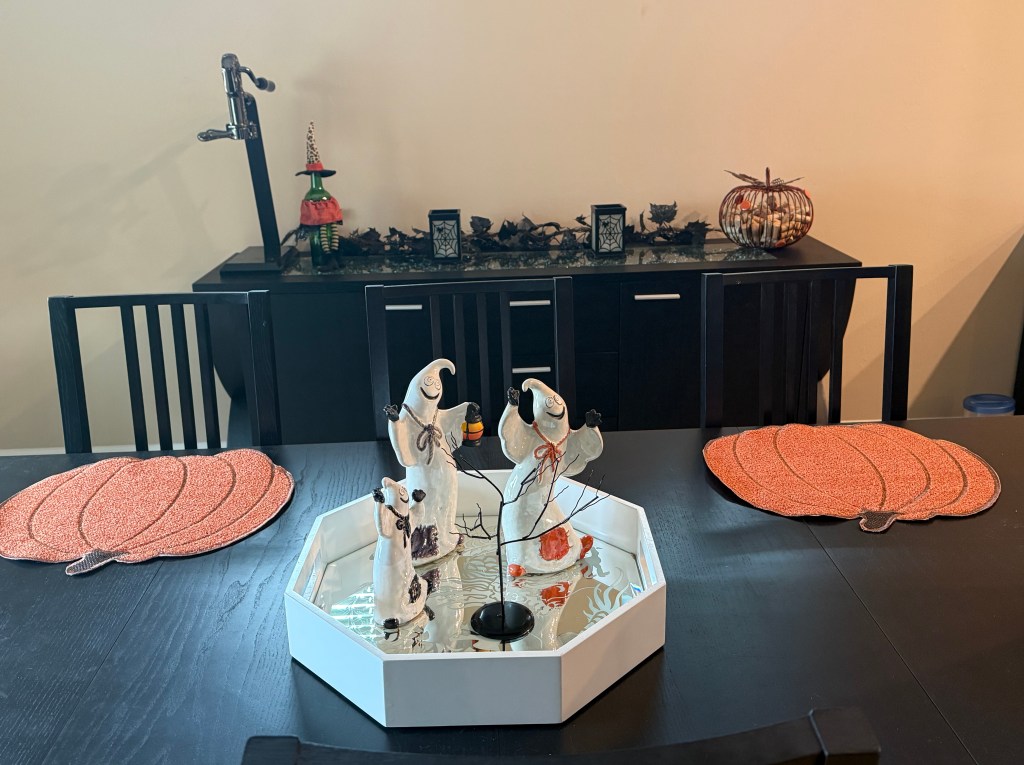 II also decorate our dining room a bit for Halloween, keeping the spirit festive throughout the house!