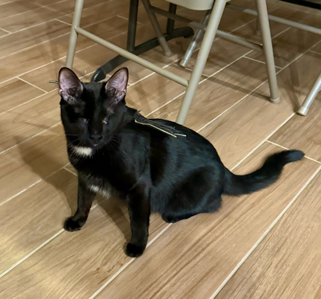 Then there’s Berloz, our only male cat, who is 2 years old and still very much a playful kitten at heart. Our good friends rescued him from a storm drain shortly after Hurricane Ian in 2022. They knew we were cat lovers and called us right away. We were thrilled to welcome him into our family! Berloz and Ortensia share a special bond and have endless fun together.