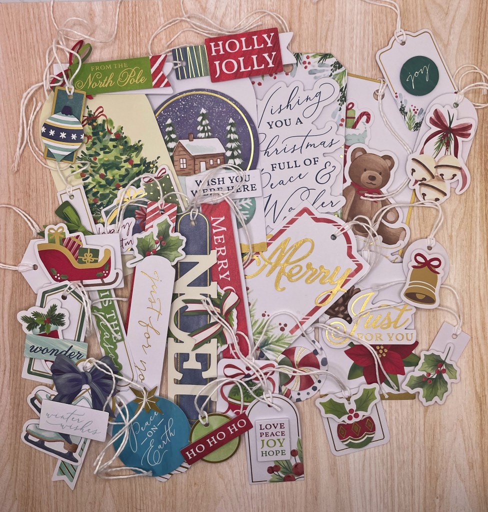 Using just these 4 Ephemera Packs, White Bakers Twine, and adhesives, I was able to make 52 gift tags and 9 cards. I didn’t even have to create from scratch; I just used the layouts and designs included in the catalog. Check out my video to see the products a little closer and all that I made with them!