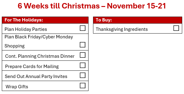 Only 6 weeks until Christmas!