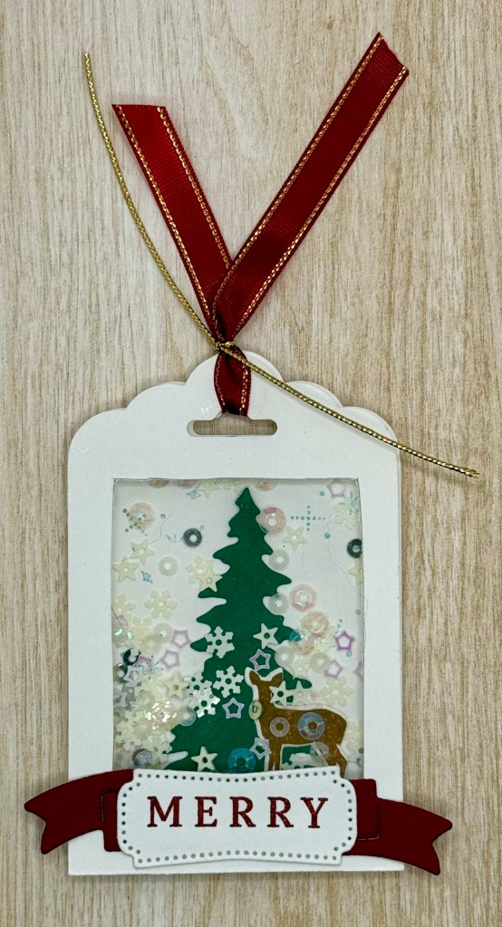Recently, I shared how you could use Stampin’ Up!’s kit as a festive package topper, however, it was similar to my topper from last year and I wanted to try something fresh and fun this time around. So, after browsing Pinterest for inspiration, I came up with this adorable shaker package topper!