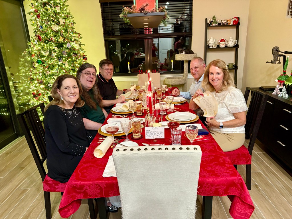 The meal was a huge success—everything was delicious, and it felt so special to share this experience with our loved ones. Pictured at the table, starting on the left and going clockwise: Nathan’s family (Anita, Chris, and Dennis) and my family (Frank and Connie). Nathan, of course, was still hard at work in the kitchen when this photo was taken!