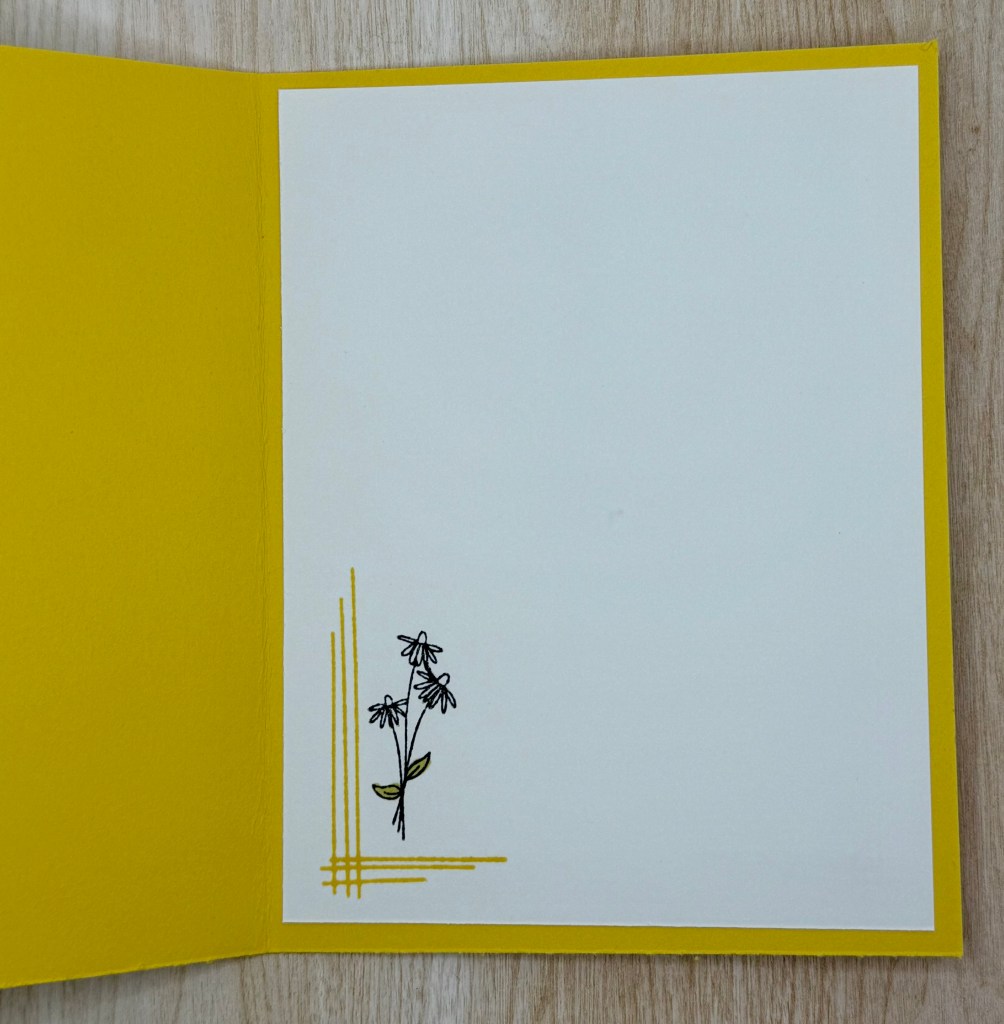 One of my favorite details is the lines stamp from the Spring Corners set. It provides such a subtle yet striking accent, as you can see on the inside of the card.