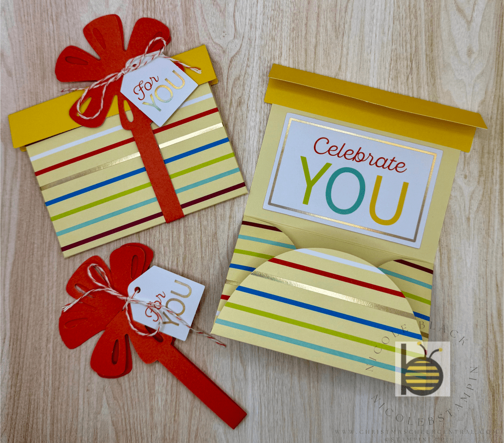 The kit includes everything you need to assemble beautifully coordinated gift bags and gift card holders—no stamping required!