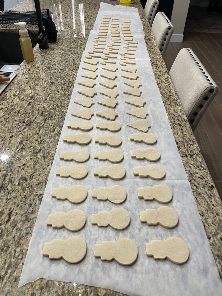 Something you might notice is there are six cookies here and I said we usually make five types. This is part of the planning. We can choose which one we are going to cut so I am seeing if I have enough that I can make ahead so we can do all 6six. 😀